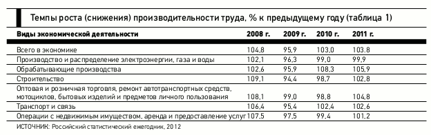 Требование времени сегодня — определить новый формат экономического роста на фундаменте повышения производительности труда при безусловном соблюдении требований к качеству выпускаемой продукции (выполняемых работ) и соблюдении стандартов безопасности производства. Эта задача стала необходимым условием повышения конкурентоспособности и выхода на глобальные рынки (см. табл. 1).